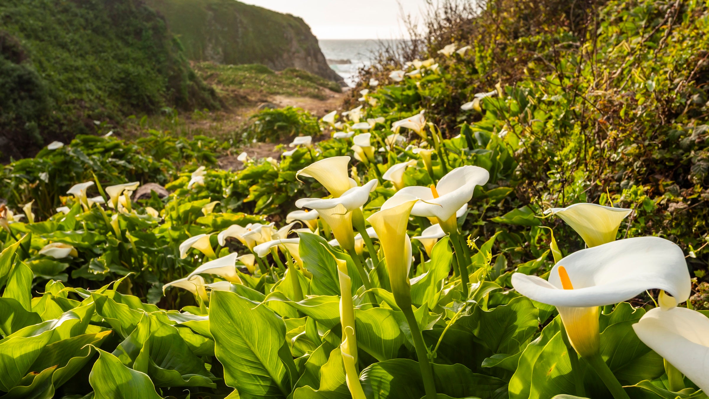 Calla lily valleys along the Big Sur coastline bloom in January (Photo: Strekoza2/Getty Images)